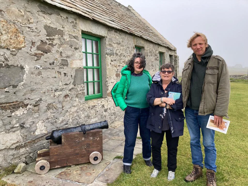 First-time visitors to Fair Isle Caroline, Chris and Katherine have arranged to be shown around the Museum by Anne, and love it so much they don’t want it to end - so they have tea with Anne afterwards.