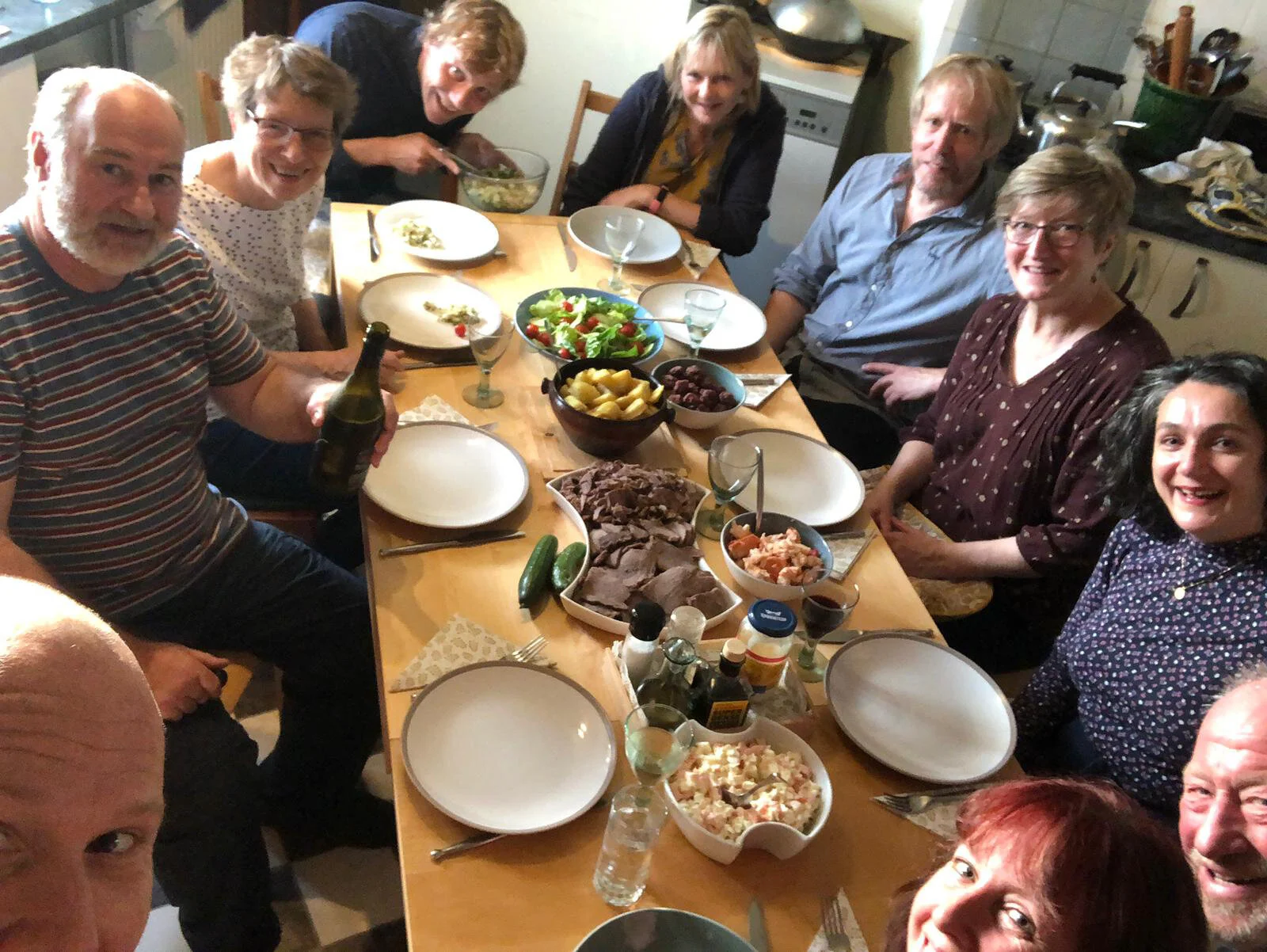 Then they head over to where Stu and I are staying for a short planning meeting, after which we tumble over to Chris’ hosts Fiona and Robert, who are laying supper for all of us + hosts. 10 of us round the kitchen table with delicious food, and it is chatty chatty badinage increasing in hilarity as the evening wears on. There is something very celebratory about this visit - achieved against the odds, and landing in this community that has had a very tough couple of years. They are enjoying every second of us being here - and so are we!