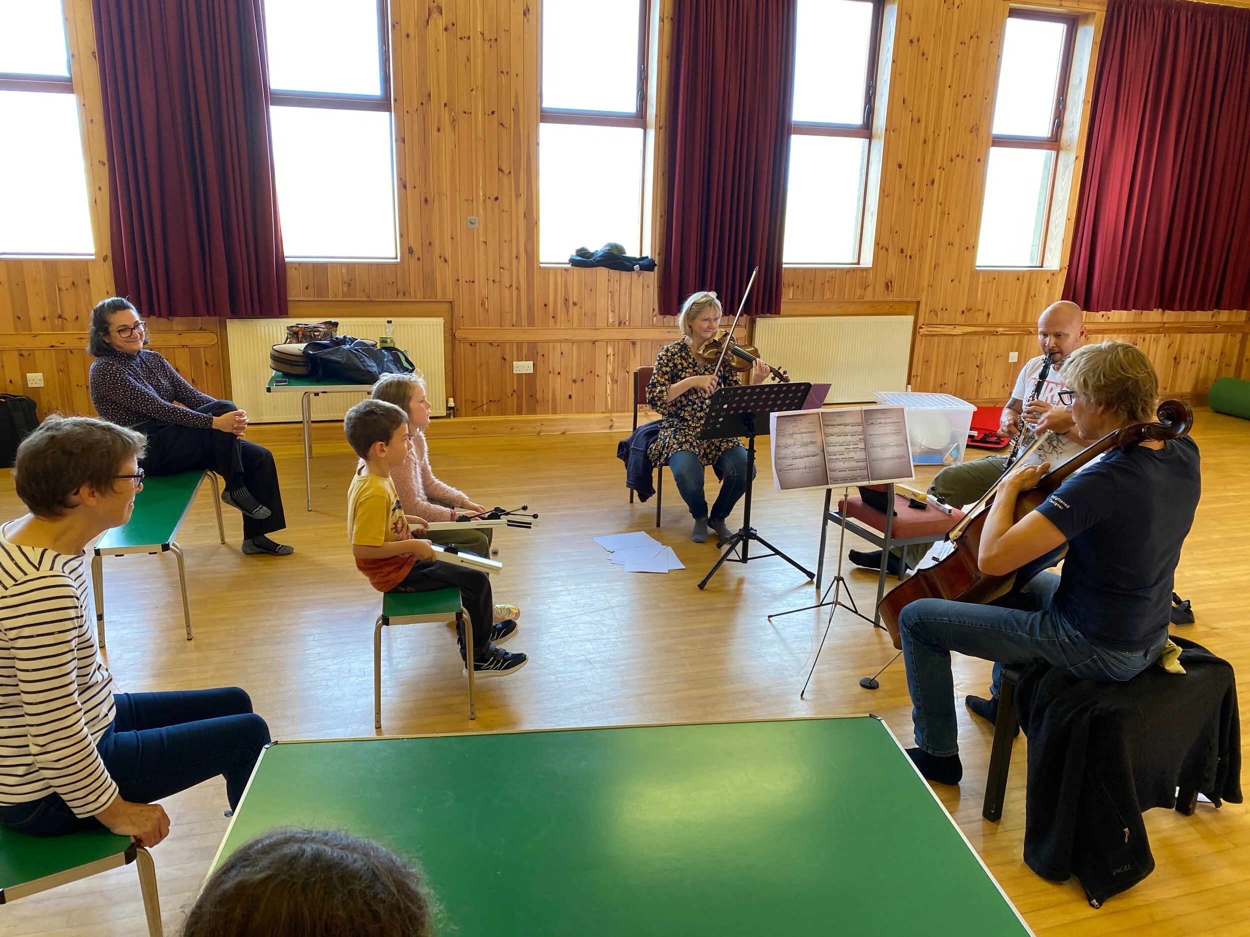 There are still restrictions in Scottish schools - no non-essential visitors - we base our residency in the Hall which has plenty of space and air, and the school sessions happen in there. The team has lateral flow tested 3 days and 24 hours before travel as per Scottish government guidelines for travel to islands. We also test while we are on the isle.